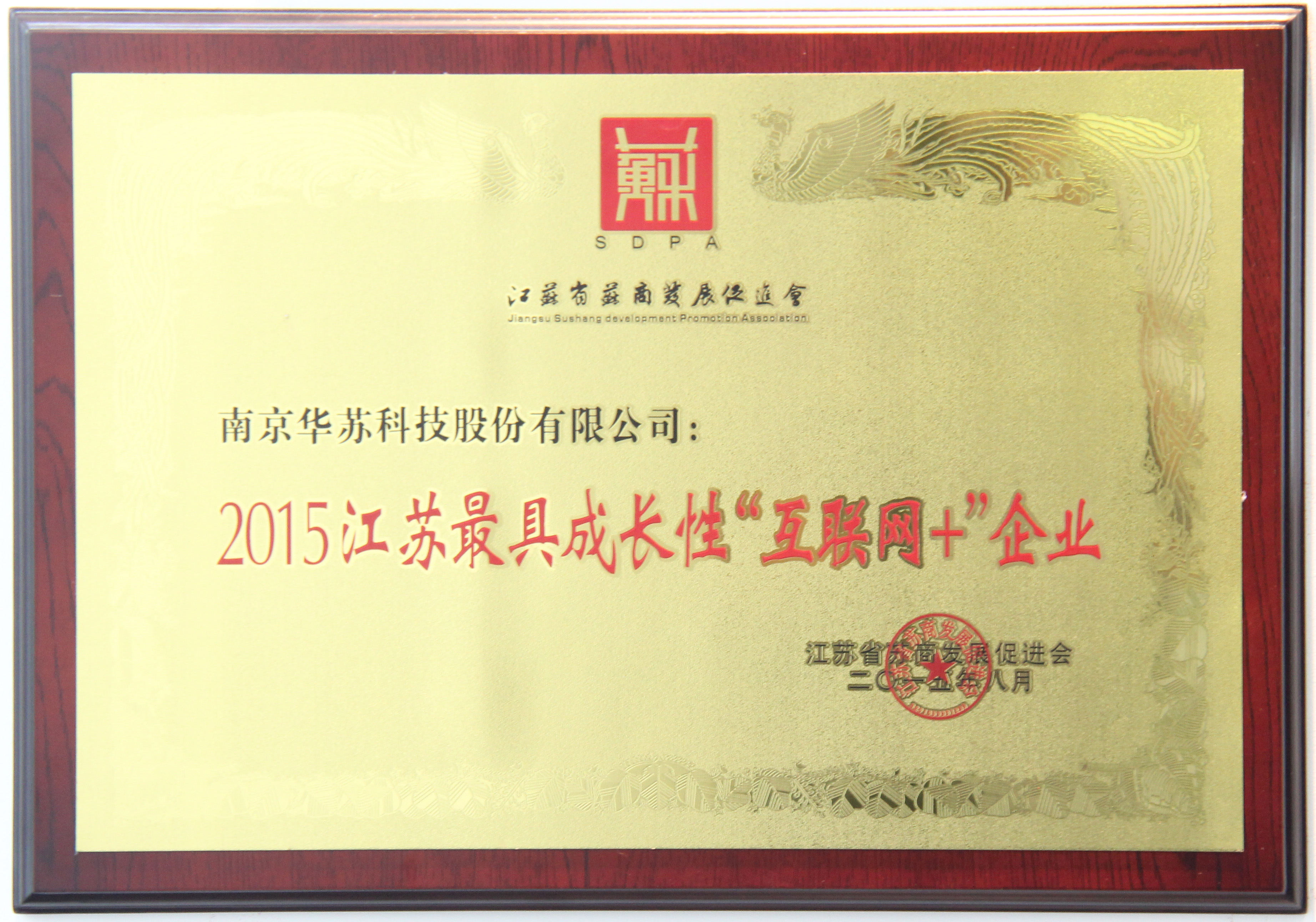 近日,由江蘇省蘇商發展 促進會主辦,江蘇蘇商研究院、蘇商傳媒承辦的“2015蘇商大會暨智能制造峰會”在寧隆重舉行。在此次峰會上,華蘇憑借其綜合實力和在互聯網應用創新方面的杰出表現,首次榮膺“2015江蘇最具成長性‘互聯網+’企業”稱號,為華蘇滿溢輝煌的歷史又勾勒下了濃墨重彩的一筆!
