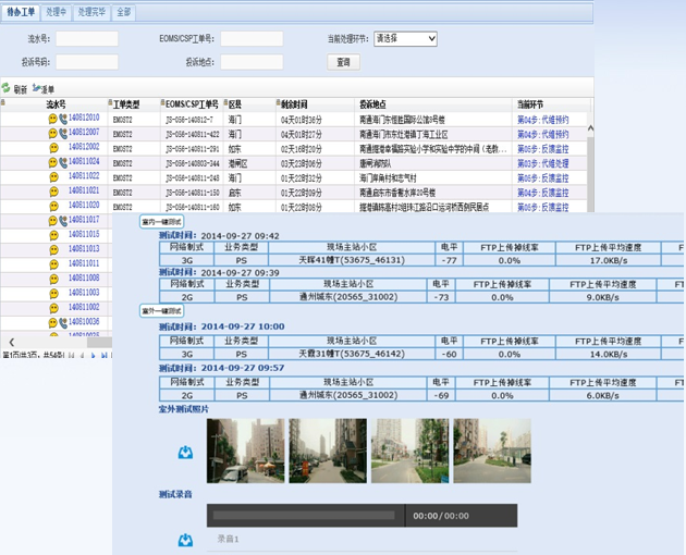 平臺側采用企業級標準的J2EE平臺,瀏覽器訪問,還有比這更方便的嗎?后臺人員分角色處理投訴工單,一步一步向前走(當然也可回退哦),達到工單流程化處理,再也亂不了啦;全網工參、規劃站、投訴點信息都可以在GIS上關聯展示,還有關鍵KPI和告警信息實時查詢,全面協助,真的是要啥有啥,再發現不了問題,您找我!最后一個重磅炸彈:用戶投訴號碼信令信息追溯分析,更深入地解決投訴問題,VIP投訴也是小CASE了。