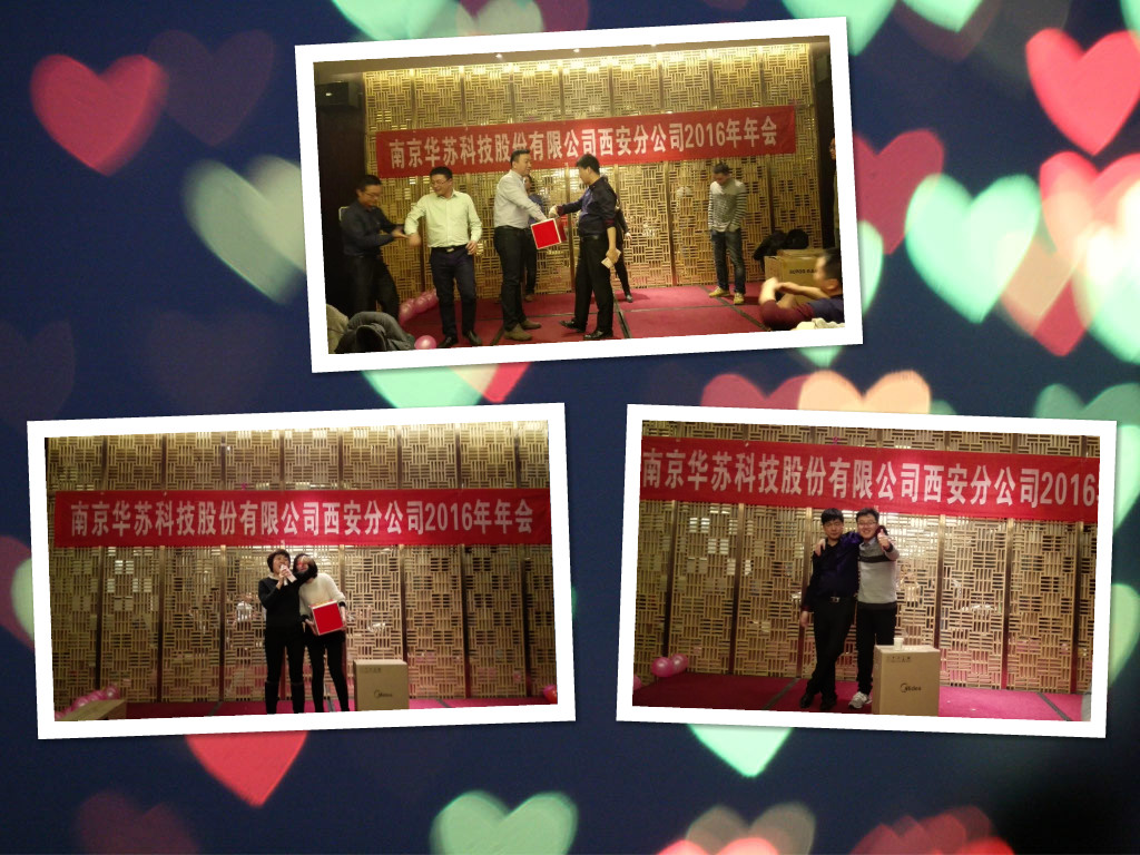 繼華蘇福建分公司年會之后,近日,華蘇西安分公司2016年年會也風風火火地拉開了帷幕。伙伴們滿載著期盼相聚,舉杯相祝、豪情滿懷。回首過去,有太多的難忘和不舍,面對未來,他們也將用自己的行動收獲更多的喜悅。