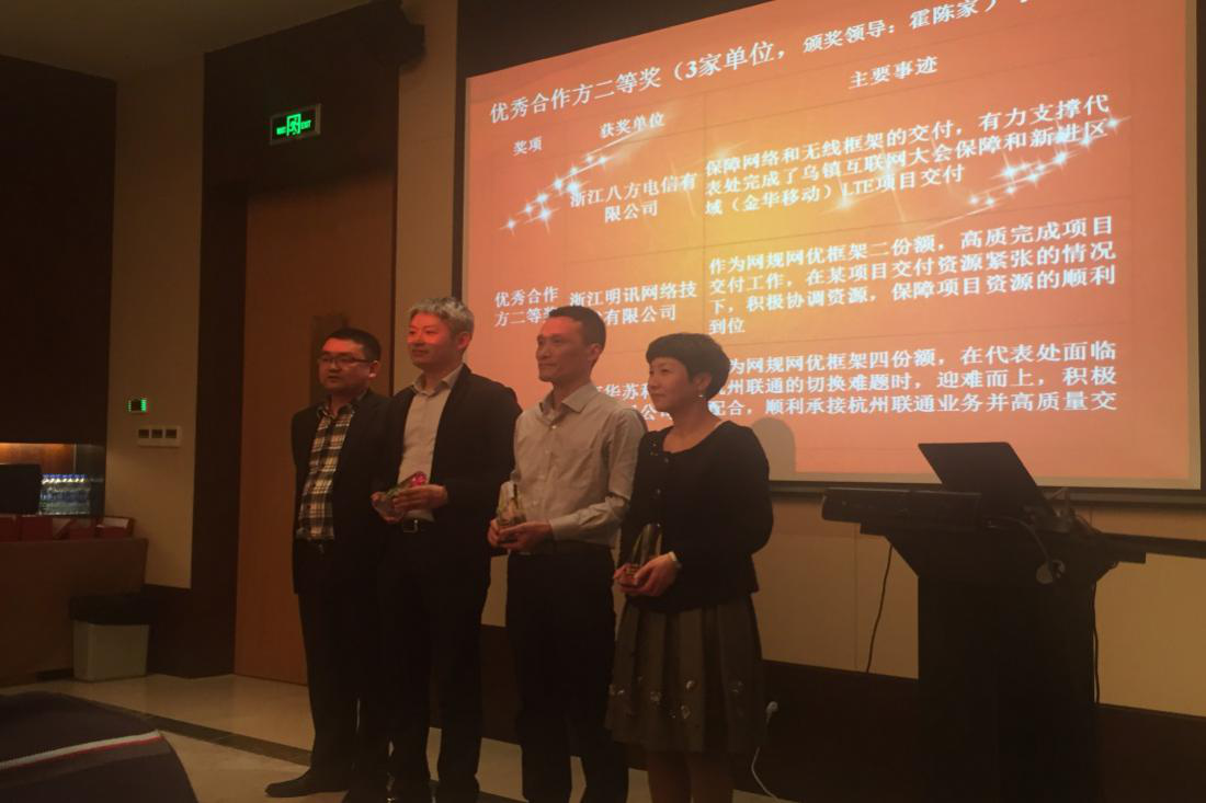 本次會議根據(jù)合作方的交付質(zhì)量、對客戶滿意度的的調(diào)查以及合作資源認(rèn)證率等方面對各個合作方做出了中肯切實的評價,其中,華蘇科技 不負(fù)華為代表處對合作方的殷殷期待,以其杰出的綜合表現(xiàn)獲得了“2015年度華為公司杭州代表處優(yōu)秀合作伙伴二等獎”的殊榮,同時還受到了“面對難題,迎難而上,積極配合,交付質(zhì)量高”的良好評價。這是對華蘇2015年付出的所有努力的最好認(rèn)可,同時也激發(fā)了我們在2016年更要長風(fēng)破浪、攜手共進的決心和動力。