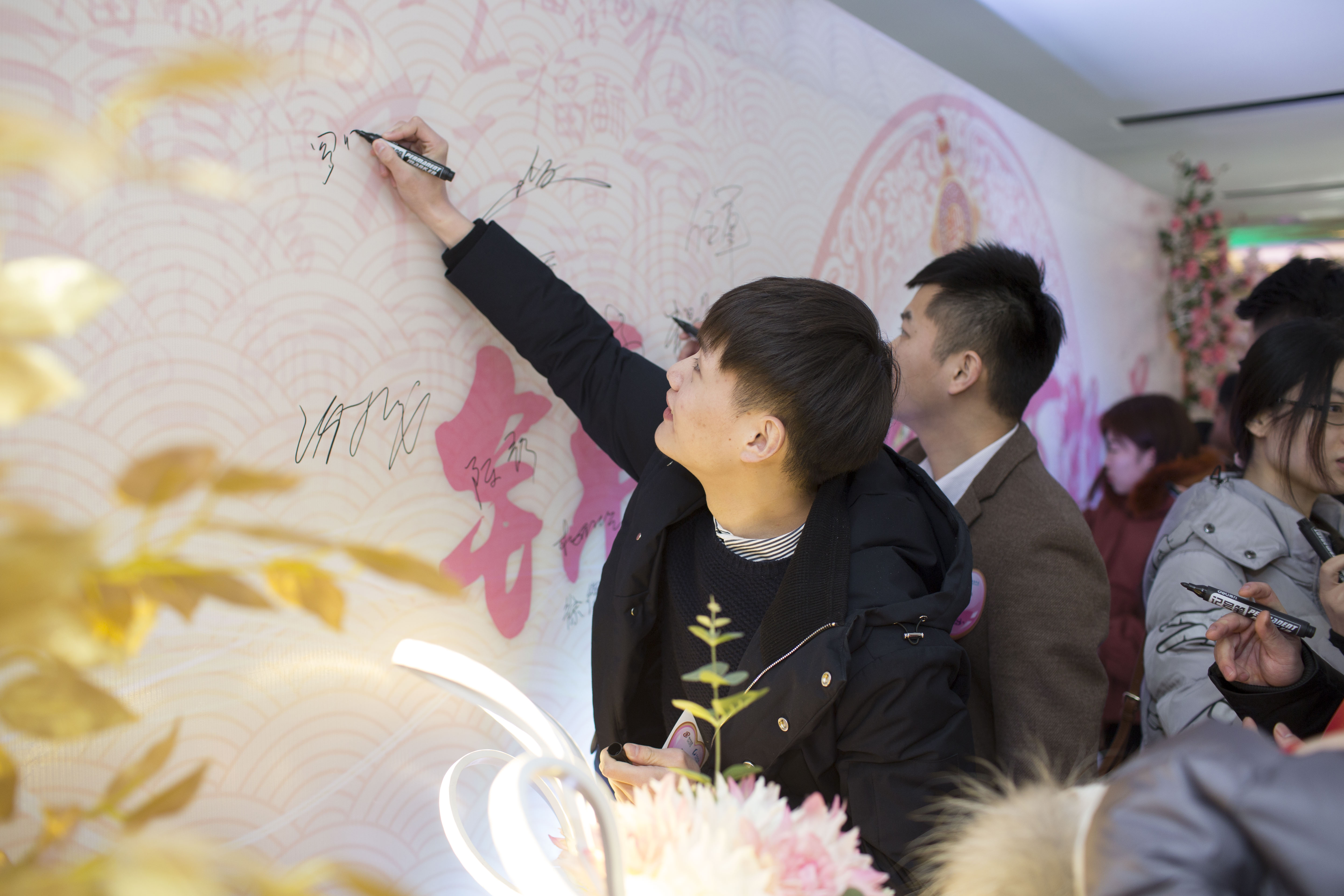 13時18分,懷著激動的心情,伴著爽朗的笑聲,大家陸續的入場,在簽到墻前簽名留念,記錄下這令人難忘的一刻。