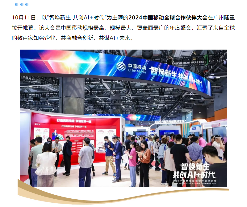 作為中國移動(dòng)的戰(zhàn)略合作伙伴,華蘇科技 攜AI能力產(chǎn)品參展2024中國移動(dòng)全球合作伙伴大會(huì),