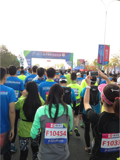 近日,“曼跑慢城·2015高淳國際馬拉松大賽”于南京高淳區體育中心鳴槍開跑。本次賽事由中國田徑協會、江蘇省體育局、南京市高淳區人民政府主辦,設有全程馬拉松、半程馬拉松和5公里健康跑三個組別,共有來自16個國家和地區的一萬余名專業選手和業余跑友參賽。為挑戰自我,華蘇的幾位成員也參與其中,面對眼前的漫漫長路,他們斗志昂揚,決心跑至終點!