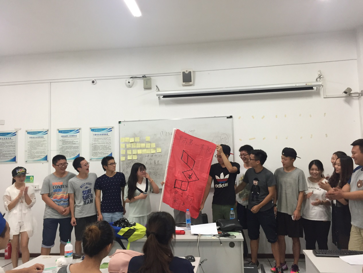 活動伊始,大家自主分組,并由團隊成員集思廣益確定小組的隊名、隊旗及口號。在確定和完成制作后,各組隊長帶領小組隊員進行風采展示,簡單的圖案中卻蘊藏著深刻的含義,大家奇思妙想的創意,真是讓人應接不暇!